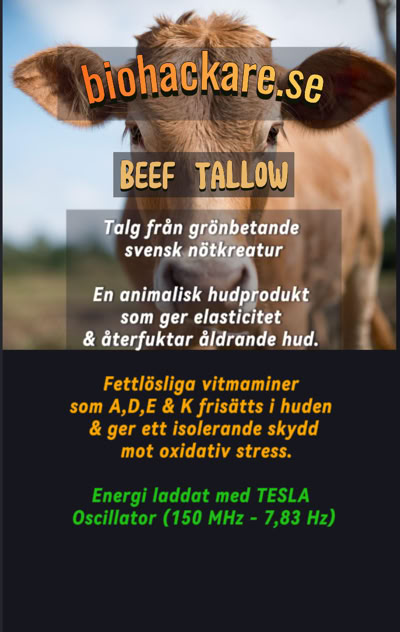 Vi laddar våra Beef Tallow produkter med High Frekvency Tesla Waves.